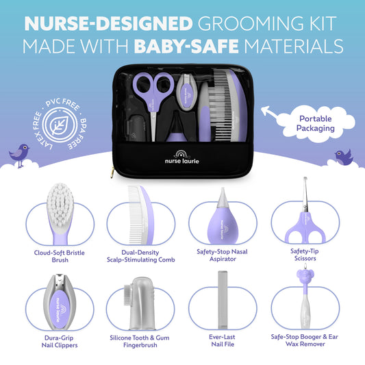 Deluxe 9-in-1 Baby Grooming Kit by Nurse Laurie – All-Inclusive, Hospital-Grade, Travel-Ready - Lavender Purple